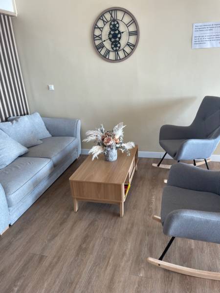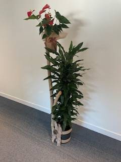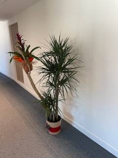 Pour le nouvel agencement et la décoration de l'accueil des locaux professionnels de la société, Passion d'Art Mony a proposé ici une composition de fleurs naturelles pour décorer différents emplacements mais également de grandes plantes vertes naturelles.